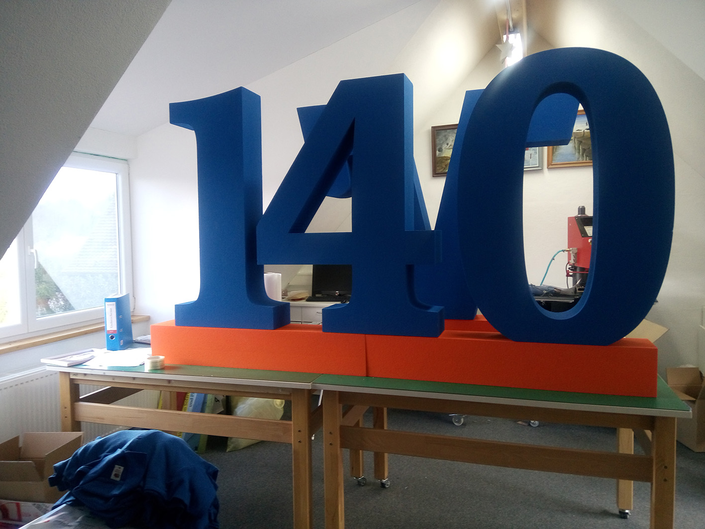oder Wänden im Firmendesign ausgestattet sein.